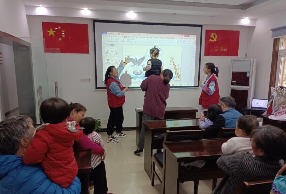課堂在趣味手影游戲中拉開帷幕。“音樂教育在幼兒教育中占有重要的位置。音樂能直接地影響人們,特別是影響兒童的感情,這對(duì)孩子認(rèn)識(shí)周圍世界有著特殊的作用。”課上,志愿者老師首先向幼兒家長(zhǎng)們簡(jiǎn)要介紹了音樂在幼兒成長(zhǎng)中的作用,引導(dǎo)和鼓勵(lì)家長(zhǎng)們重視學(xué)前音樂教育。在兒歌賞析環(huán)節(jié),志愿者老師帶領(lǐng)幼兒們一起跟唱,并進(jìn)行了簡(jiǎn)單的肢體律動(dòng),現(xiàn)場(chǎng)充滿了歡快的氣氛。