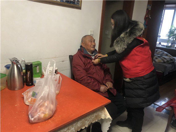 今年88歲的楊德富是一位老復(fù)員軍人,由于老人年紀(jì)較大,平時社區(qū)黨委就經(jīng)常組織黨員義工走訪以便及時了解他的身體和生活狀況,每周還協(xié)同居家養(yǎng)老中心工作人員定期上門探訪,與老人談心、幫老人做一些力所能及的家務(wù),遵循志愿者助人自助的理念,幫助解決老人日常生活中的困難。