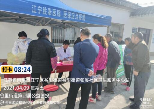 為提倡全民健康,弘揚(yáng)社會(huì)志愿服務(wù)精神,增強(qiáng)居民關(guān)愛(ài)健康的意識(shí),4月9日,南京市江寧區(qū)谷里街道張溪社區(qū)聯(lián)合江寧區(qū)美麗鄉(xiāng)村普法服務(wù)中心,在社區(qū)養(yǎng)老中心開(kāi)展了“關(guān)注百姓健康”愛(ài)心義診活動(dòng),特邀江寧勝泰醫(yī)院醫(yī)療團(tuán)隊(duì)為居民提供免費(fèi)測(cè)量血壓、血糖和疼痛、婦科、肛腸和肛腸鏡檢查等項(xiàng)目。