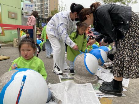 原本冰冷不起眼的石球,在孩子們和居民的畫筆下變得生動而富有意義。這次彩繪活動給孩子們提供了一種新的繪畫形式,也給居民們提供了一個多姿多彩的交流平臺,更為我們生活的社區(qū)、幼兒園增添了一道靚麗的風景線,陪伴是最好的愛,在無形中為袁家邊社區(qū)的孩子們增添了更多的愛意。