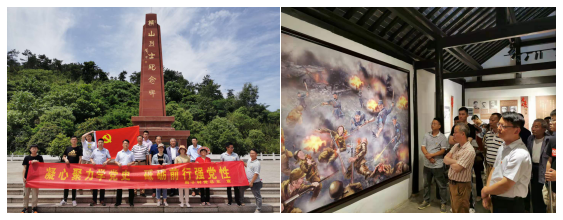 來到橫山烈士紀(jì)念碑,黨員們肅立在紀(jì)念碑前,向革命烈士默哀,表達(dá)對烈士們的無限追思和懷念。全體黨員重溫入黨誓詞,面對紀(jì)念碑莊嚴(yán)宣誓,繞行紀(jì)念碑,并且向革命烈士敬獻(xiàn)鮮花,行三鞠躬禮。隨后,大家參觀了新四軍紀(jì)念館。陳列史料翔實,內(nèi)容豐富,生動再現(xiàn)了當(dāng)年新四軍與日寇浴血奮戰(zhàn)的悲壯場面。看著一幅幅生動的圖片資料、一段段感人的文字介紹、一件件珍貴的革命文物,把大家?guī)Щ亓讼鯚煆浡目谷諔?zhàn)場,憶往昔,思今朝,感悟崢嶸歲月。