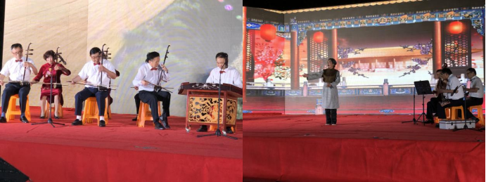 民樂合奏《洪湖水浪打浪》《瀏陽河》、女聲獨(dú)唱《毛主席話兒記心上》、舞蹈《花鼓聲聲慶百年》、群口快板《社區(qū)防控疫情》......演員們用嘹亮的歌聲、優(yōu)美的舞姿、輕快的打板,展示了江寧人民的良好精神風(fēng)貌和村委會防疫的艱辛與不易,引導(dǎo)黨員群眾厚植愛黨、愛國、愛社會主義的偉大情懷,爭做朝氣蓬勃、積極向上、文明和諧新時代好村民。
