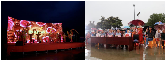 文藝匯演在開(kāi)場(chǎng)舞《中國(guó)紅》的優(yōu)美舞姿中拉開(kāi)序幕。匯演形式豐富多樣,有深入人心的詩(shī)歌朗誦,朗朗上口的快板《天然村防控疫情》,還有紅色主題的舞蹈《花鼓聲聲慶百年》、打蓮廂《江南女子打蓮廂》、舞蹈《山野的風(fēng)》等。大合唱《沒(méi)有共產(chǎn)黨就沒(méi)有新中國(guó)》唱出了天然村人的精氣神,也唱出了天然村全體黨員為群眾做好服務(wù)的決心。演員們唱著誠(chéng)摯的歌,跳著歡快的舞,帶領(lǐng)現(xiàn)場(chǎng)觀眾一同穿越歷史的烽煙,重溫黨的光輝歷程?;顒?dòng)中還穿插進(jìn)行了黨史學(xué)習(xí)互動(dòng)問(wèn)答,現(xiàn)場(chǎng)氣氛十分熱烈,觀眾紛紛舉手,踴躍參與。通過(guò)這種互動(dòng)方式,不僅提高了活動(dòng)的趣味性,也使得黨史知識(shí)再次深入人心。精彩的表演表達(dá)出人民群眾對(duì)美好生活的向往及對(duì)中國(guó)共產(chǎn)黨百年華誕的美好祝愿。“今天的演出很精彩,深情謳歌了建黨100年的豐功偉績(jī),演繹了代代相傳的革命精神,極大地豐富了我們的精神文化生活,我覺(jué)得非常有意義。”村民李女士激動(dòng)地說(shuō)道。
