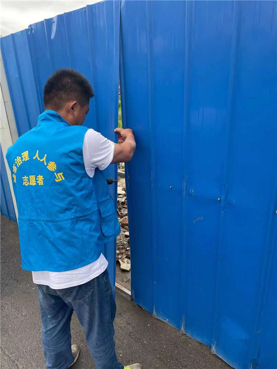 志愿者們立即帶上電鉆、鉗子、鐵絲等工具,對倒伏和破損的圍擋進(jìn)行修繕、固定。通過一個(gè)多小時(shí)的努力,圍擋得到修復(fù),安全得以保障。同時(shí),在修理圍擋之時(shí)也將屯在圍擋里面的垃圾清理干凈,使環(huán)境衛(wèi)生問題也得到了很好的整治。此次社區(qū)迅速處置倒塌事件消除安全隱患的做法,受到了周邊居民的稱贊與好評。
