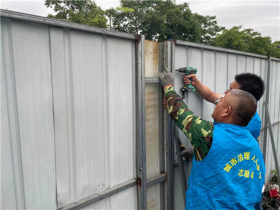 修復(fù)破損圍擋 營造轄區(qū)整潔市容環(huán)境