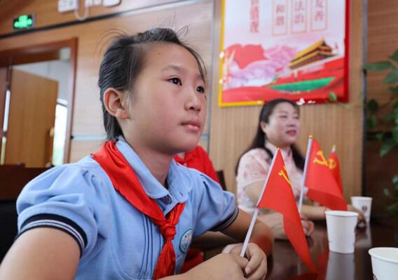 現(xiàn)場,關(guān)工委工作人員組織孩子們走進龍尚村黨群服務中心,觀看了慶祝大會。孩子們手中拿著黨旗,認真觀看著屏幕上的直播典禮,聆聽著習近平總書記的重要講話。
