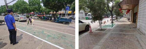 集中力量,常態(tài)長效,加強停車規(guī)范。城管辦市容中隊切實加大路段巡查頻次和疏導(dǎo)力度,積極引導(dǎo)居民規(guī)范停放,養(yǎng)成良好的停車習(xí)慣。文明往往體現(xiàn)在一言一行一舉之間,按照規(guī)范要求,將非機動車統(tǒng)一朝向、整齊有序擺放,停至施劃設(shè)置、帶有非機動車標識的劃線區(qū)域內(nèi),確保與停車區(qū)域內(nèi)箭頭標識方向一致,既能節(jié)省有限的道路通行空間,也能為更多人提供便捷,避免了亂停亂放導(dǎo)致的擁堵現(xiàn)象。