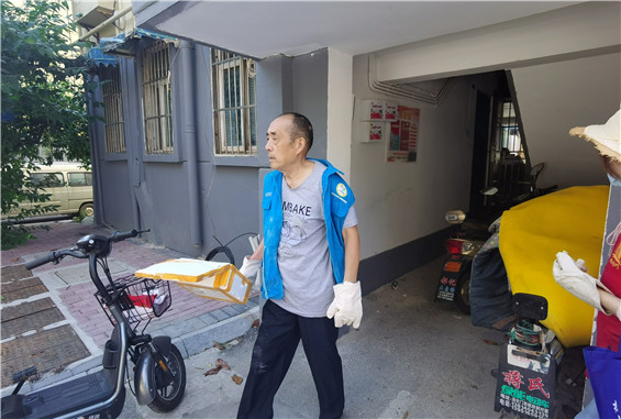城市志愿者清理樓道雜物 除去居民安全“絆腳石”