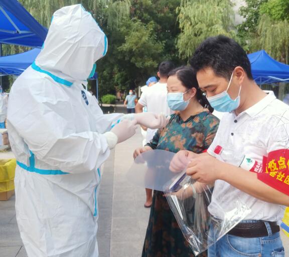 作為退役軍人的徐禮晨充分發(fā)揮軍人本色,勇于擔(dān)當(dāng)自身的職責(zé)使命,主動(dòng)請纓陪同醫(yī)護(hù)人員前往居民家中。“來,張開嘴,不用怕,沒事的。”在居民家中,徐禮晨和醫(yī)護(hù)人員一起引導(dǎo)居民們進(jìn)行正確規(guī)范的采樣。由于天氣炎熱,需要走訪的居民人數(shù)眾多,徐禮晨在密不透風(fēng)的防護(hù)服的包裹下已經(jīng)連續(xù)工作了好幾個(gè)小時(shí)。“辛苦倒是有的,但自己曾經(jīng)是個(gè)軍人,這點(diǎn)苦還是扛得住的。”徐禮晨表示,作為一名軍人,為人民群眾服務(wù)是自己的職責(zé),尤其是在緊急情況下,只要群眾需要,可以奮不顧身。