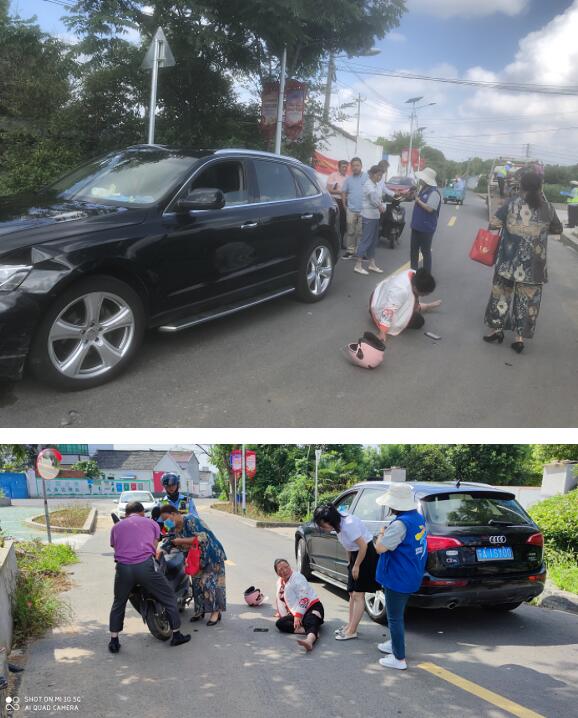 近日,南京市江寧區(qū)湖熟街道耀華社區(qū)網(wǎng)格員,正在社區(qū)內(nèi)日常巡查,經(jīng)過胡村路口時,發(fā)現(xiàn)前方發(fā)生一場交通事故,一名騎著電動車的大姐被撞到在地,電動車也倒在地上。