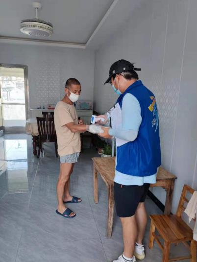 和平村網格員帶著醫(yī)護人員前往居家觀察人員家中,現(xiàn)場,網格員幫忙填寫錄入居家觀察人員身份信息,醫(yī)護人員在一旁負責核酸采樣。在為他們測量體溫時,不忘叮囑他們與外來人員接觸時要戴好口罩,還為每人準備了一包口罩,防止他們口罩數(shù)量不足。網格員考慮到他們一個人在家隔離,有很多不便之處,臨走時熱情地對居家觀察人員說:“居家觀察期間,你要是什么想買什么,盡管打電話或者微信消息告訴我,我一定幫你帶過來。只要有需要,我們一定滿足。”