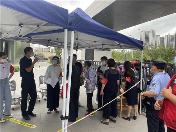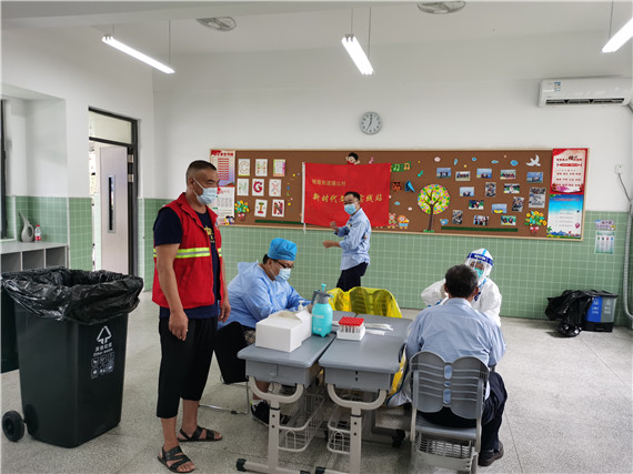 “請(qǐng)大家有序排隊(duì),配合出示健康碼”,在華僑城小學(xué)核酸檢測(cè)點(diǎn)大門處,短短的幾句話陳剛同志重復(fù)了上百遍,忙碌了一個(gè)上午還在核查排隊(duì)檢測(cè)人員的健康碼。接上級(jí)通知,7月25日,南京市棲霞區(qū)棲霞街道攝山村全體工作人員聞令而動(dòng)、沖鋒在前,用汗水踐行使命,助力開展第二次全員核酸檢測(cè)工作安全、平穩(wěn)推進(jìn)。