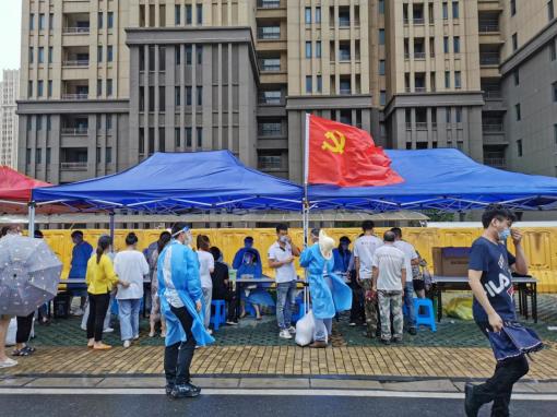 核酸檢測(cè)現(xiàn)場(chǎng)的工作人員合影