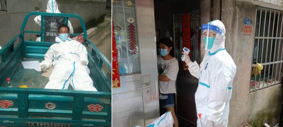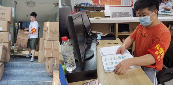 朱維新和李霞一樣,也是村內(nèi)主動(dòng)報(bào)名加入便民服務(wù)小分隊(duì)的一員,他主要負(fù)責(zé)將村民網(wǎng)購(gòu)的生活物品或者親友送進(jìn)村內(nèi)的物品分類(lèi)運(yùn)輸?shù)矫恳晃淮迕竦氖种?。同時(shí),他還每天在村內(nèi)進(jìn)行小喇叭廣播,登記代購(gòu)封控區(qū)內(nèi)村民需求的藥品。有一次朱維新穿著防護(hù)服帶領(lǐng)醫(yī)護(hù)人員上門(mén)逐戶做核酸,因天氣炎熱,朱維新半路突然昏倒在地,同行的伙伴立即將他拉至陰涼處休息,盡管身邊的同時(shí)極力勸阻他休息一會(huì),但在他的極力堅(jiān)持下,他又重新回到了自己的工作崗位,不斷當(dāng)好群眾的物資“派送員”。