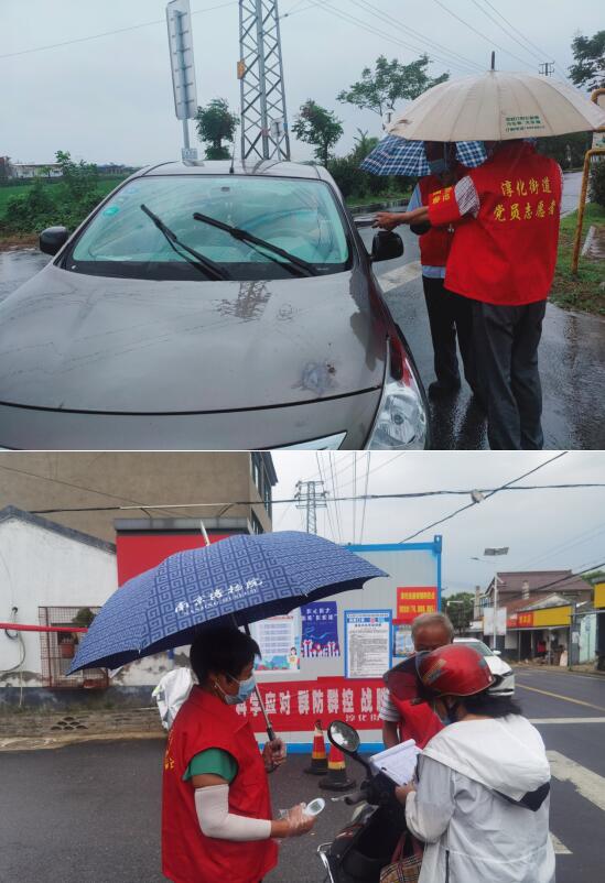 今天的雨不大,但長(zhǎng)時(shí)間的點(diǎn)位值守,她們的身上都浸透了雨水,泥水濺在褲腳上,尤其是連續(xù)值守12個(gè)小時(shí)的志愿者更是辛苦。但志愿者們沒有抱怨天氣,而是堅(jiān)持不漏一人一車一測(cè)一登,“疫”無反顧沖在疫情防控一線。民主村的志愿者們用堅(jiān)強(qiáng)的意志和頑強(qiáng)的毅力始終堅(jiān)守在崗位上從未懈怠,雨中那一抹抹挺拔的身影,成為雨天道路上一道亮麗的風(fēng)景線。