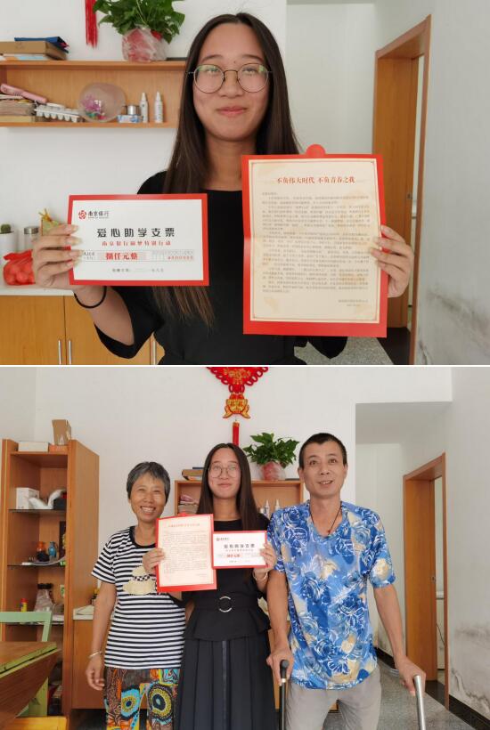 近日,南京銀行股份有限公司將“圓夢行動”帶到了南京市江寧區(qū)淳化街道青龍社區(qū),在這里,他們資助了一位殘疾家庭的困難學子——程雨,為她的大學旅程保駕護航。