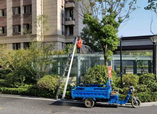 在正式清潔前,志愿者們提前統(tǒng)計了小區(qū)里需要進(jìn)行清洗的玻璃幕墻和玻璃頂?shù)臄?shù)量,購買了充足的清洗工具和清潔劑,為本次清潔活動做足了準(zhǔn)備?;顒蝇F(xiàn)場,志愿者們拿水管連上水龍頭,小心翼翼地用梯子爬上玻璃頂,將水噴灑到玻璃幕墻的每個角落。隨后,志愿者們將水和清潔劑按照一定的比例混合,用手中的清潔工具沾滿清潔劑,把玻璃幕墻上的明顯污漬刮干凈,再用水沖洗掉清潔劑。因為天氣比較炎熱,為了防止水干得太快不好清洗,兩個志愿者共同協(xié)作,一個噴水,一個擦拭,配合默契。經(jīng)過仔細(xì)的清洗,原來灰蒙蒙的玻璃幕墻和玻璃頂都煥然一新,在陽光下閃閃發(fā)光。