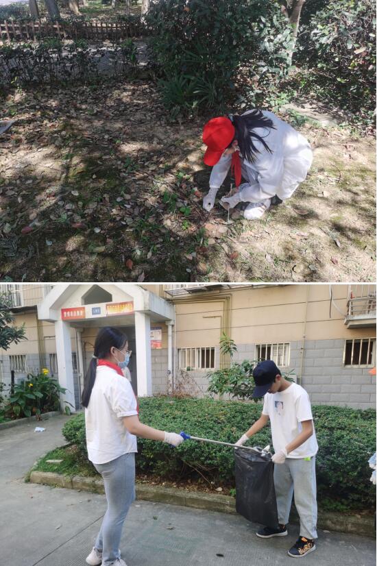 9月23日下午,楊老師聯(lián)合社區(qū)巾幗志愿者們,帶著學(xué)生在清風(fēng)園小區(qū)進(jìn)行環(huán)境清理,雖然已入秋,但下午的陽光炙熱地照射在人的臉上,感覺還是火辣辣的。頂著烈日,有的學(xué)生兩人一組清掃著小區(qū)地面的落葉;有的學(xué)生細(xì)心地用夾子在綠化帶中尋找著“白色”垃圾;有的為了方便直接用手去撿地面的落葉……經(jīng)過半個(gè)小時(shí)的辛勤打掃,路面干凈無物、綠化帶整齊劃一,看著自己辛勤勞作的成果,學(xué)生們默契地笑了起來。