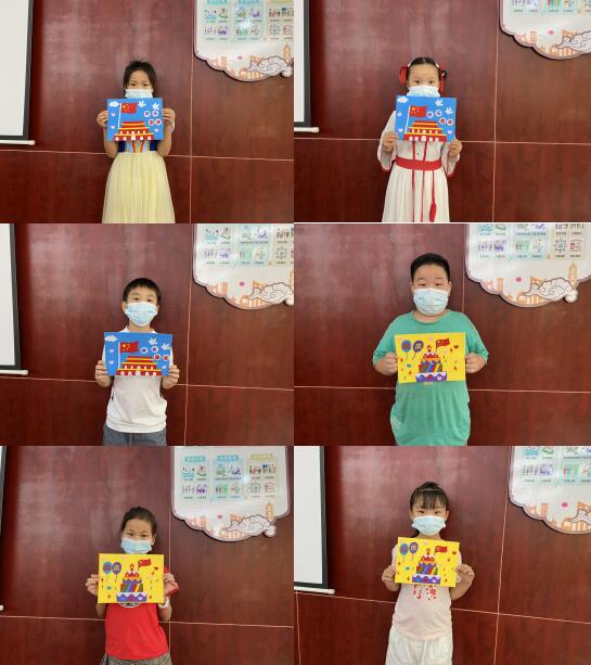鮮艷的五星紅旗、彩色的多層蛋糕、莊嚴(yán)肅穆的天安門廣場(chǎng)、展翅飛翔的和平鴿……孩子們親自動(dòng)手,在工作人員的指導(dǎo)下,在彩紙上貼上一個(gè)個(gè)貼畫(huà),用自己的方式為祖國(guó)母親慶生。