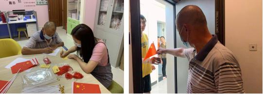 在活動(dòng)前夕,清風(fēng)園小區(qū)26棟“樓棟銅掌柜”歐光余與社會(huì)工作者一起親自寫邀請(qǐng)卡片,同時(shí),先社會(huì)工作者一步,給所在樓棟兩個(gè)單元的家庭發(fā)送了活動(dòng)邀請(qǐng)卡和小國旗,并向居民解釋了活動(dòng)信息。