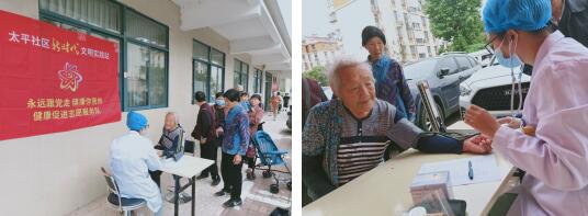 專業(yè)醫(yī)生逐一為老人們測量血壓和血糖,同時根據(jù)老人的測量結(jié)果,對其血壓狀況做出初步的評估以及專業(yè)的健康指導(dǎo)。測量中發(fā)現(xiàn)血壓高、血糖高的老人,醫(yī)生會關(guān)照老年人注意飲食,關(guān)注自己的身體反應(yīng)。在場的志愿者還會向老人普及一些疫情信息和防護知識。