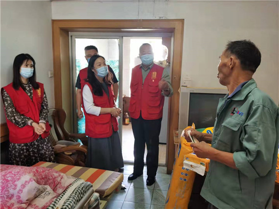 首先堯安殘聯(lián)的工作人員去到的是楊志成老人家中,楊老今年十月就八十周歲了,他因?yàn)榍皫啄曛酗L(fēng)導(dǎo)致肢體殘疾。一進(jìn)門(mén),楊老的妻子便熱情招待了殘聯(lián)工作人員,楊老坐在沙發(fā)上,看得出來(lái),因?yàn)樯鐓^(qū)殘聯(lián)的到來(lái)他很開(kāi)心。殘聯(lián)的工作人員也熱心的詢(xún)問(wèn)楊老的身體情況,楊老的妻子告訴我們:“他的身體還可以,平時(shí)天氣好了也會(huì)扶著他下樓散散步。這幾天天氣不好,他只能在家里走走。偶爾還能幫我剝剝蒜。”殘聯(lián)工作人員聽(tīng)后連連夸贊楊老,并囑咐他們,近期降溫了,要注意身體。這次慰問(wèn),殘聯(lián)為楊老準(zhǔn)備了尿不濕、護(hù)理墊等生活用品,希望對(duì)他夜晚睡覺(jué)有所幫助。隨后,在楊老妻子的感謝聲中,堯安社區(qū)殘聯(lián)離開(kāi)了楊老家,前往其他殘疾老人家中。