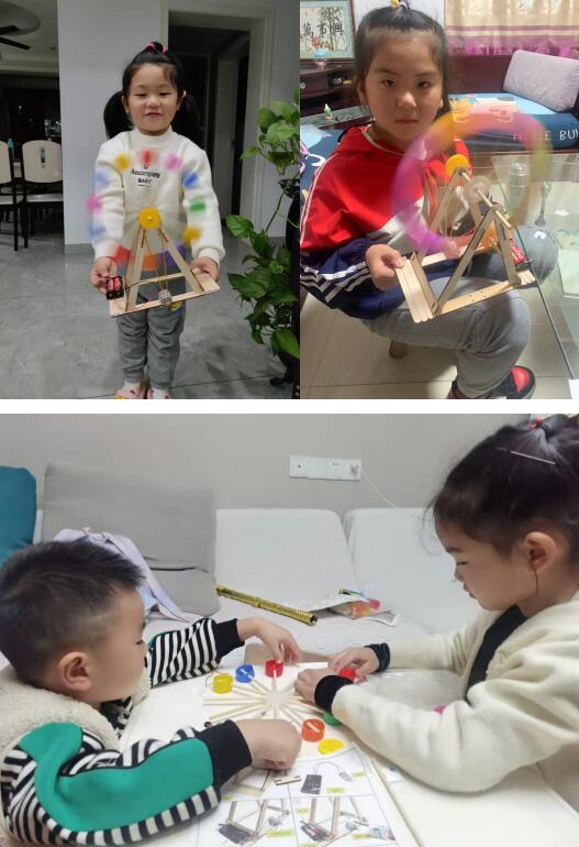 活動(dòng)伊始,建設(shè)村志愿者便將做好的摩天輪發(fā)在群里進(jìn)行展示,精美的手工成品頓時(shí)讓小朋友們產(chǎn)生了濃厚的興趣,群里氣氛立即活躍起來。志愿者向小朋友講解制作方法,發(fā)送制作視頻及制作步驟圖給大家看,孩子們則跟著一步一步做,個(gè)別跟不上的孩子,志愿者還會(huì)給予耐心的指導(dǎo)。大家邊看邊做,慢慢學(xué)習(xí)摸索經(jīng)驗(yàn),互相借鑒??粗种械淖髌芬粋€(gè)個(gè)拍照發(fā)送到群里給大家欣賞,小朋友們個(gè)個(gè)都充滿成就感。