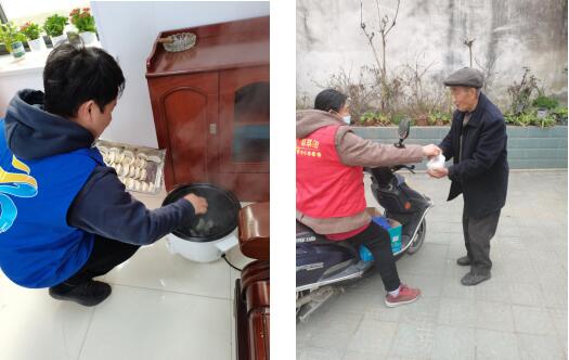 秉持著疫情期間不發(fā)生大規(guī)模聚集的防控措施,志愿者們決定將餃子包好后上門送給困難老人。當(dāng)天,志愿者們準(zhǔn)備好了蔬菜、肉、調(diào)料、餅皮等,將餡料剁碎攪拌,手指靈巧翻飛,一個個飽滿可愛的餃子就誕生了。志愿者們煮好開水,將餃子下鍋,等到餃子熟透漂浮起來,就將餃子打包到飯盒里,每個人分配好送去哪里,就馬不停蹄地進(jìn)村了。送到困難老人手上時,餃子還冒著熱氣,蘊(yùn)含著滿滿的關(guān)心與呵護(hù)。志愿者向老人噓寒問暖,詢問他們的身體情況和生活狀況,告訴他們,如果有什么困難一定要及時反映。老人們吃著熱騰騰的餃子,心里也暖呼呼的。