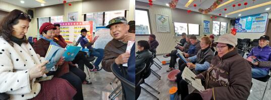 活動(dòng)中,電瓷新村社區(qū)綜合文化服務(wù)中心工作人員為在場(chǎng)的居民們每人發(fā)放一本書,有故事書、報(bào)刊雜志、紅色經(jīng)典等,可供大家自由選擇,讓大家在一起閱讀,營(yíng)造良好的讀書氛圍。書中精彩的圖片以及深刻的文字深深地感染著居民們,進(jìn)一步激發(fā)著大家繼續(xù)閱讀的熱情。此外,工作人員還在一旁引導(dǎo)大家主動(dòng)發(fā)言,交流自己的讀書感悟,在相互討論中碰撞思想的火花。