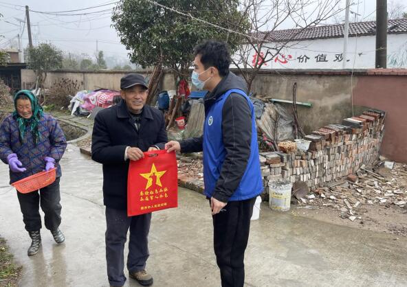 春節(jié)將至,在這個中國人最重視的傳統(tǒng)佳節(jié),江寧區(qū)湖熟街道錢家村網(wǎng)格員給退役軍人送福字對聯(lián),讓他們感受到黨組織和村委會的關(guān)心與掛念。