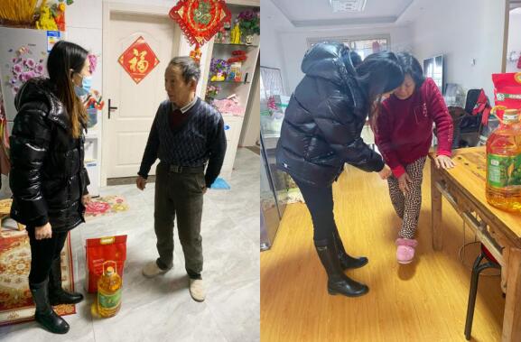 計(jì)生協(xié)工作人員拎著米和油挨家挨戶地拜訪,每到一戶細(xì)細(xì)地詢問他們最近的身體、生活情況,一位老人跟工作人員說:“前兩天被車子碰擦了,現(xiàn)在腿腳不便,只能在家躺著”,工作人員通過仔細(xì)的詢問得知是軟組織受傷,還好沒有傷到骨頭,并親切地叮囑道:“一定要好好養(yǎng)傷,天氣寒冷,盡量少出門,有什么困難和我們聯(lián)系”。