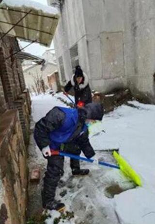 網(wǎng)格員們還注意到老人們的家門口還有一些積雪,擔(dān)心老人們的手腳不靈活可能摔倒,立刻拿起掃帚、鐵鍬幫老人們把門口的積雪清除干凈,確保老人們的日常出行安全。