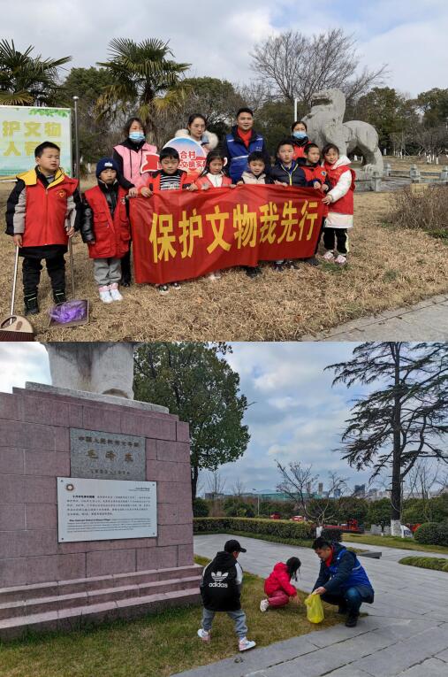 在撿拾垃圾的同時,城市治理志愿者還對孩子們進(jìn)行了實(shí)地愛國主義教育,愛護(hù)文物從小抓起,告訴他們蕭恢墓石刻、十月村毛主席雕像的歷史,孩子們聽叔叔講歷史,興致頗高。