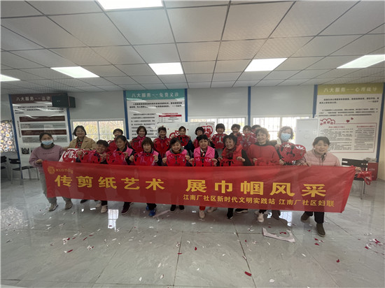 今天的整個(gè)活動,溫馨喜慶,女同胞們通過參與剪紙活動,既豐富了自己的業(yè)余文化生活,又提升了自己的文藝鑒賞品位。同時(shí)融合黨建元素,培養(yǎng)女性黨員自信獨(dú)立一面。大家非常感謝社區(qū)黨組織、對社區(qū)女同胞的關(guān)愛,讓我們在濃濃的剪紙藝術(shù)氛圍中,度過了一個(gè)美好難忘的“三八”節(jié)。也希望今后經(jīng)常開展黨建引領(lǐng)新時(shí)代文明實(shí)踐活動,豐富社區(qū)居民的文化生活。(供稿人:王瀟赟)