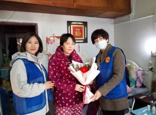 插花工藝不僅僅是一門藝術(shù),更是一門技術(shù),花藝師胡云老師細(xì)致耐心地給大家講解選擇花材、裁剪、顏色搭配、造型等各方面的插花知識與技巧,并現(xiàn)場向大家示范,一起修剪花材,搭配花朵,再用紗紙或玻璃紙將它們包裝起來。玫瑰、百日菊、滿天星、尤加利……不同顏色、造型的花葉搭配在一起,產(chǎn)生了不同的效果。在花藝?yán)蠋煹闹笇?dǎo)下,殘疾人用不同顏色的花朵巧妙地創(chuàng)意組合創(chuàng)作出一束束造型各異、色彩鮮艷的插花作品??粗约菏掷锏幕ㄊ綍r忙于工作和家務(wù)的殘疾人專委李師傅臉上都綻放出幸福的笑容說:“用花藝來慶祝自己的節(jié)日,既學(xué)習(xí)了插花知識,又是一種全新的體驗,非常有意義。” 插花結(jié)束志愿者還不忘把扎好的花束給行動不便的殘疾人送去,祝福她們“女神節(jié)”快樂。