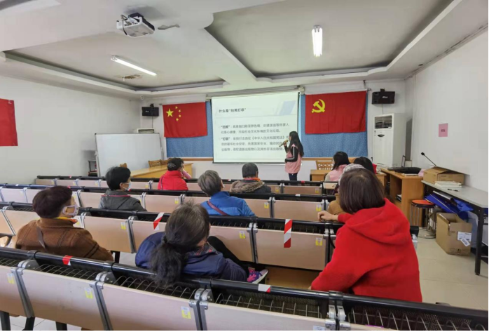 “‘掃黃’指清理黃色書(shū)刊、黃色音像制品,‘打非’指打擊非法出版物,“掃黃打非”的工作重點(diǎn)是嚴(yán)厲打擊違禁出版物和相關(guān)非法出版活動(dòng),嚴(yán)厲打擊淫穢色情出版物和與其他相關(guān)的文化活動(dòng),嚴(yán)厲打擊侵權(quán)盜版,全力保護(hù)知識(shí)產(chǎn)權(quán)……”社區(qū)邀請(qǐng)志愿者為大家普及“掃黃打非”定義及其工作重點(diǎn),大家認(rèn)真聆聽(tīng)著講解員的講解,不時(shí)地用紙筆記錄核心要點(diǎn)。志愿者還特意叮囑家中有青少年的居民們,平日里要關(guān)注青少年心理健康,青少年正處于身心發(fā)展關(guān)鍵期,但又伴隨著叛逆、易受外界不良影響等特點(diǎn),需要特別關(guān)注。