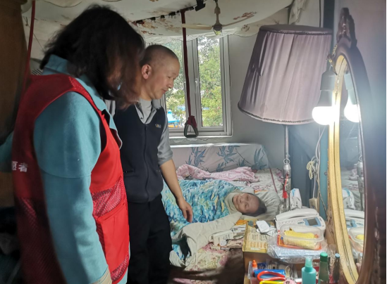 張春偉本人自小患有小兒麻痹癥,另一條腿也骨折了,一直坐在輪椅上生活,他的母親癱瘓長年臥床,平時張春偉照顧母親,弟弟每周送菜過來,整理整理家務,陪母親和弟弟吃個飯。社區(qū)書記、網格員同黨員志愿者上門之時,正值其弟弟送菜過來,社區(qū)書記告訴張春偉和其弟弟:“有什么生活上的困難都可以找社區(qū),我們一定會盡全力協(xié)調解決。”雖然一家人生活不易,但母親樂觀,兒子孝順,一家人笑對生活,讓我們倍受感動,這種精神更值得我們學習傳揚。