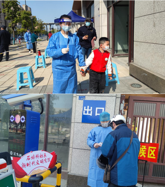 4月2日,石埠橋村社區(qū)開展新一輪核酸檢測,志愿者們在核酸檢測現(xiàn)場積極維護現(xiàn)場秩序、協(xié)助錄入人員信息、上門幫助特殊困難行動不便居民快速檢測。從早上8到準備到晚上8點結(jié)束,核酸采樣現(xiàn)場,志愿者們忙碌的身影就像一個“陀螺”,不知疲倦地旋轉(zhuǎn)堅守在崗位上,不怕苦不怕累。志愿者們認真負責的態(tài)度、耐心溫和的行動給了轄區(qū)居民堅定生活的希望與信心。