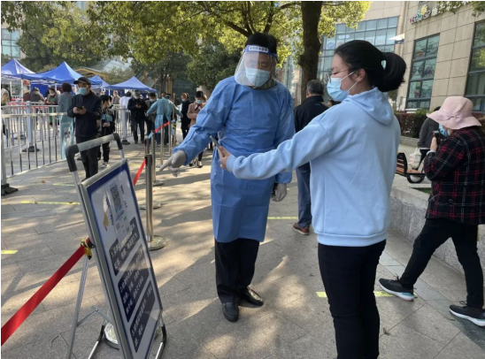 3月份江寧區(qū)疫情形勢(shì)嚴(yán)峻,由于醫(yī)護(hù)人數(shù)緊張,潘進(jìn)在看到社區(qū)招募核酸采集信息志愿者的信息后就立即報(bào)名加入。截至目前,已經(jīng)開展了十四輪核酸,每一輪他都沒有缺席,采集居民核酸信息、引導(dǎo)居民有序排隊(duì)、指導(dǎo)群眾準(zhǔn)備核酸身份碼等等,在核酸點(diǎn)位上貢獻(xiàn)著自己的力量。