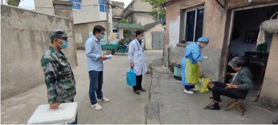 由于社區(qū)老年人身體情況不一,退役軍人先鋒隊采取“上門+接送”兩種方式全程協(xié)助老年人接種新冠疫苗。由于有的老年人行動不便,社區(qū)退役軍人就來到老人家中,親自接送老人到社區(qū)衛(wèi)生院。“老人家,小心腳下,我來牽著你”,他們把老人從車上攙扶下來,又在疫苗接種后將老人安全送回家。在上門進行新冠疫苗接種時,河南社區(qū)退役軍人主動為醫(yī)護人員分擔,提著醫(yī)療物資挨家挨戶為老年人接種新冠疫苗,將溫暖送到老人心里。