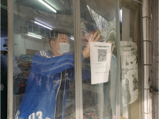 安全員來(lái)到轄區(qū)內(nèi)的九小場(chǎng)所中,在商鋪顯眼位置張貼打印好的場(chǎng)所碼,并指導(dǎo)商鋪店主如何使用場(chǎng)所碼,囑咐他們一旦有居民進(jìn)出,要掃描場(chǎng)所碼,登記相關(guān)信息,以便后期及時(shí)根據(jù)居民們的動(dòng)態(tài)進(jìn)行追溯,最大程度上避免疫情的進(jìn)一步蔓延。同時(shí),安全員向店主們強(qiáng)調(diào),近期出現(xiàn)很多快遞、物流包裝陽(yáng)性導(dǎo)致的病毒傳播情況,在外進(jìn)貨時(shí)要注意保存收據(jù)、發(fā)票等,尤其涉及到冷鏈相關(guān)的貨物時(shí)最好拍照留存相關(guān)信息,務(wù)必做好個(gè)人防護(hù)。