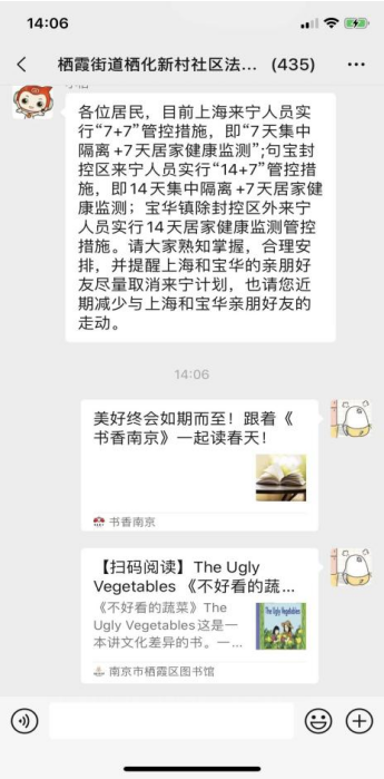 疫情來(lái)勢(shì)洶洶,使得人們居家時(shí)間延長(zhǎng),在一定程度上催生并形成了一系列線上學(xué)習(xí)熱潮。棲化新村社區(qū)殘協(xié)工作人員借助線上平臺(tái),搭建閱讀學(xué)習(xí)的新陣地,通過在微信群中為廣大居民推送線上閱讀材料,提升居民閱讀興趣,引導(dǎo)他們養(yǎng)成線上閱讀的好習(xí)慣,豐富居家生活。