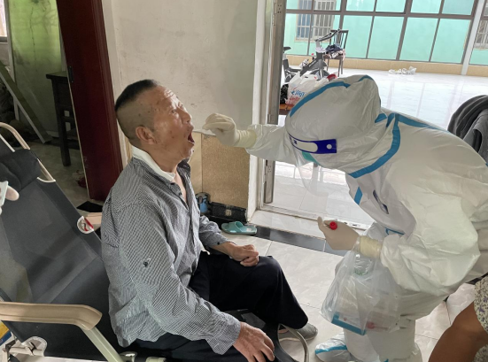 因?yàn)槌D昱P床,上下樓困難,每次核酸檢測(cè)都愁壞了家屬,既想配合防疫措施,又不想折騰老人,而上門(mén)檢測(cè)的服務(wù)著實(shí)解決了這家人的困境。家屬感動(dòng)的說(shuō):“村委會(huì)跟我說(shuō)可以上門(mén)服務(wù)的時(shí)候我們都很高興,老人年紀(jì)大了身體又不好,本來(lái)就經(jīng)不起折騰,感謝村委會(huì)給了我們兩全其美的辦法。”