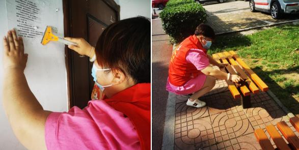 活動中,志愿者們分工合作,一些在小區(qū)內(nèi)的主要道路上清掃垃圾;一些將供居民們休息、休閑的長椅擦拭干凈;還有一些深入到樓棟之中擦拭樓梯欄桿、鏟除“牛皮蘚”小廣告……在這場“大奮戰(zhàn)”里,志愿者們頂著烈日,充分發(fā)揮不怕苦不怕累的精神,出現(xiàn)在小區(qū)內(nèi)的各個角落,爭取不留任何衛(wèi)生死角,掃帚、簸箕、垃圾袋、抹布和小鏟子都成為他們手中的工具,所有影響到居民們生活和感觀的垃圾、灰塵都成為了他們面對的“敵人”。”我們的前輩們?yōu)榱税傩兆龀隽诉@么多的犧牲,“一名青年志愿者表示,”雖然我們現(xiàn)在的生活已經(jīng)過得很好了,但我依然希望能為我們的居民做出一些貢獻(xiàn),讓他們的生活更舒適。“