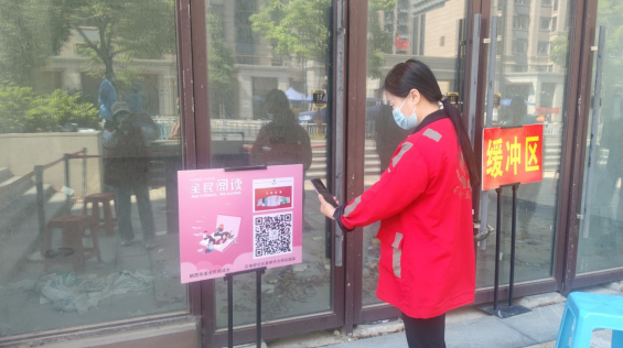 “用手機(jī)微信掃描展板上的的二維碼,選擇喜歡的書目進(jìn)行閱讀,讓閱讀充實(shí)等候,掃碼看書不無(wú)聊。”志愿者一邊維持現(xiàn)場(chǎng)推進(jìn)秩序,一邊引導(dǎo)居民掃碼看書。“手機(jī)閱讀,等待的時(shí)間也變得短了。”居民張英平時(shí)就喜歡看一些世界名著,在核酸檢測(cè)現(xiàn)場(chǎng),她拿著手機(jī)掃描閱讀二維碼,排隊(duì)利用碎片時(shí)間安靜閱讀《每朵烏云背后的陽(yáng)光》。