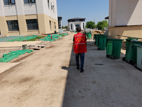 社區(qū)工作人員也對實(shí)訓(xùn)基地工地的生活宿舍進(jìn)行了巡查,提醒在住工人注意用電安全,并檢查沉淀池及污水處理裝置等。