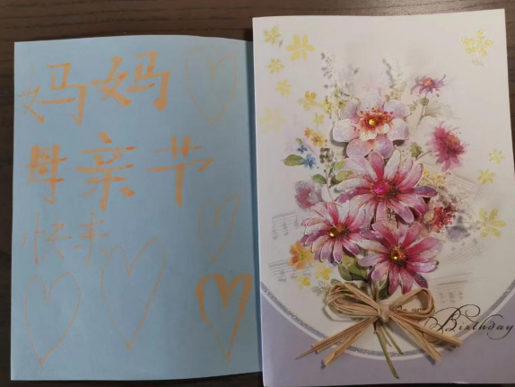隨后,志愿者們?yōu)楹⒆悠占傲四赣H節(jié)的由來(lái)和意義,小朋友們還制作了卡片。孩子們對(duì)賀卡進(jìn)行創(chuàng)意加工,并寫下溫馨的祝福,將平時(shí)難宣于口的愛(ài)意傳遞給自己的母親,雖只有片語(yǔ)只言,卻滿載著深深情誼。收到禮物后,母親們與孩子熱情擁抱,滿心感慨和欣慰。