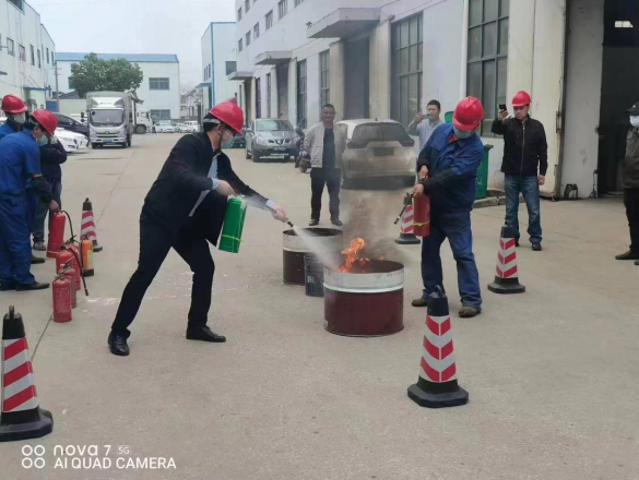 為了讓大家更好地掌握消防安全知識(shí),社區(qū)工作人員組織企業(yè)員工開展了一場(chǎng)消防演練,指導(dǎo)他們?cè)诨馂?zāi)發(fā)生時(shí)應(yīng)該如何正確逃生,并教導(dǎo)大家根據(jù)所學(xué)的知識(shí)實(shí)際操作滅火器,將火盆里的火源熄滅。