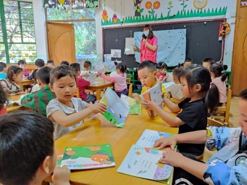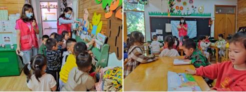 幼兒園教室里設(shè)有圖書角,志愿者精心挑選了一些精彩、經(jīng)典的繪本故事放在其中供孩子們自行挑選。簡單的文字、生動(dòng)的插圖、動(dòng)人的情節(jié),無一不吸引著孩子們的注意力,大家迫不及待地讀起繪本,打開一扇觀察世界的大門?,F(xiàn)場,便民服務(wù)中心志愿者還向孩子們介紹繪本故事,并邀請孩子講述自己喜歡的選段,分享喜歡的理由和讀后的感想,在分享互動(dòng)中充分鍛煉他們的閱讀、理解、表達(dá)能力。