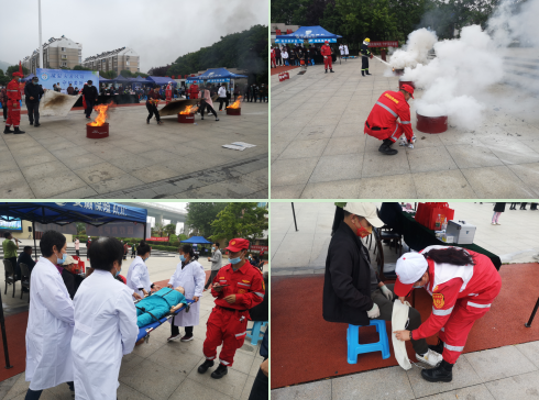 隨著背景音樂的響起,現(xiàn)場指揮一聲令下,緊急救援組、醫(yī)療救護(hù)組、后勤保障組和疏散救護(hù)人員迅速沖去災(zāi)難現(xiàn)場,組織居民用毛巾捂住口鼻,彎腰跑出樓道,撤離至安置點(diǎn),醫(yī)療救護(hù)組對傷員進(jìn)行緊急救治。在模擬火災(zāi)現(xiàn)場時,安全員先向居民講解了滅火器的種類,展示了滅火器正確使用方法,并講解了在火情發(fā)生時如何自救、互救等基礎(chǔ)知識,現(xiàn)場模擬了火情發(fā)生時如何迅速滅火,讓在場的人員切實(shí)感受到了預(yù)防火災(zāi)的重要性,明白了突遇險情時掌握逃生技能的迫切性。